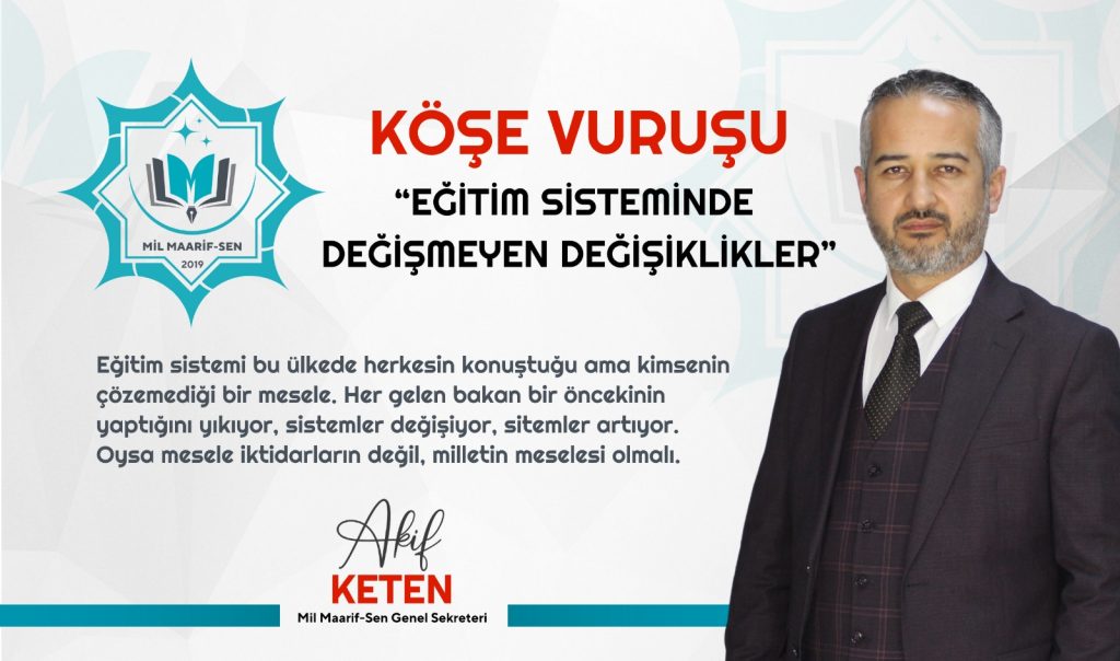 Oysa “Millî Eğitim” kelimesi, bir milletin nasıl eğitileceğine dair en stratejik başlıktır. Ancak ülkemizde yapılan değişiklikler bir gecede olur, kişiler değiştikçe bir önceki dönem tarihin tozlu raflarına kaldırılır.